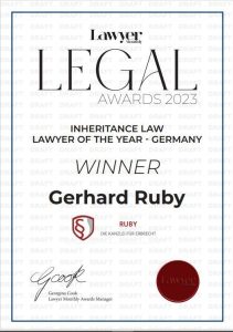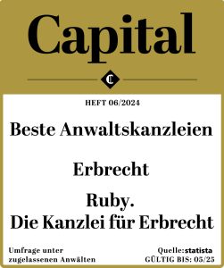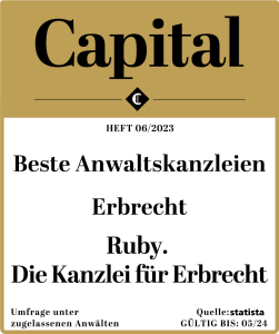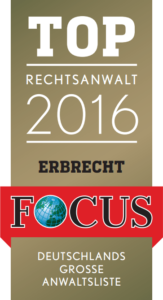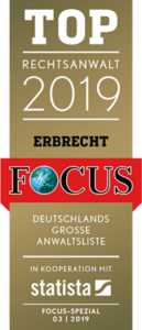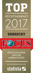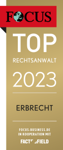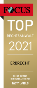 Seit 2000 – 2024 jährlich vom Münchener Nachrichtenmagazin FOCUS als Top Anwalt für Erbrecht ausgezeichnet.